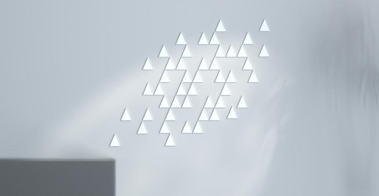 The parts are made of 3mm plexiglass and are placed directly on the wall, using an adhesive.
